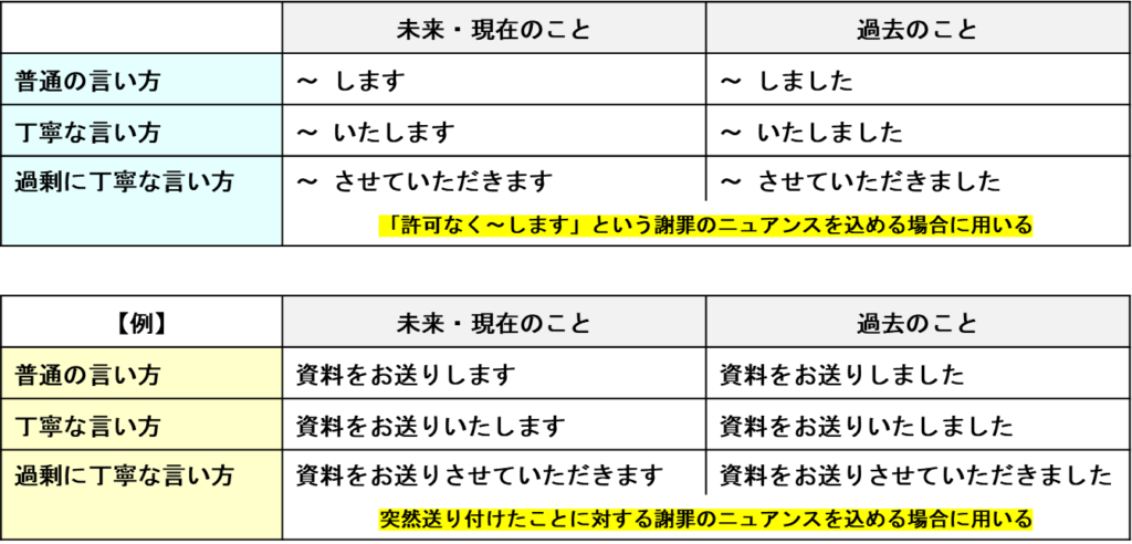 つまり、その行為を行うのに許可が必要なかったり、自分にメリットがない場合に「させていただきます」を使うことは不適切なのです。例えば、「メールを送る」「資料を添付する」のような単なる報告や連絡などです。