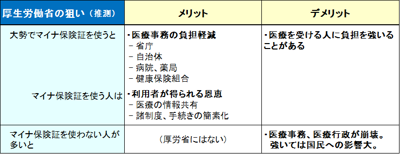 厚生労働省の説明は、取って付けたようなメリットだらけの、まるで低レベルのCMやチラシのようです。「商品のメリットを並べておけば買ってくれる = 国民のメリットを並べておけば賛同してくれる」と思っているかのようです。もっと本音で真面目に訴えればいいのにと思います。