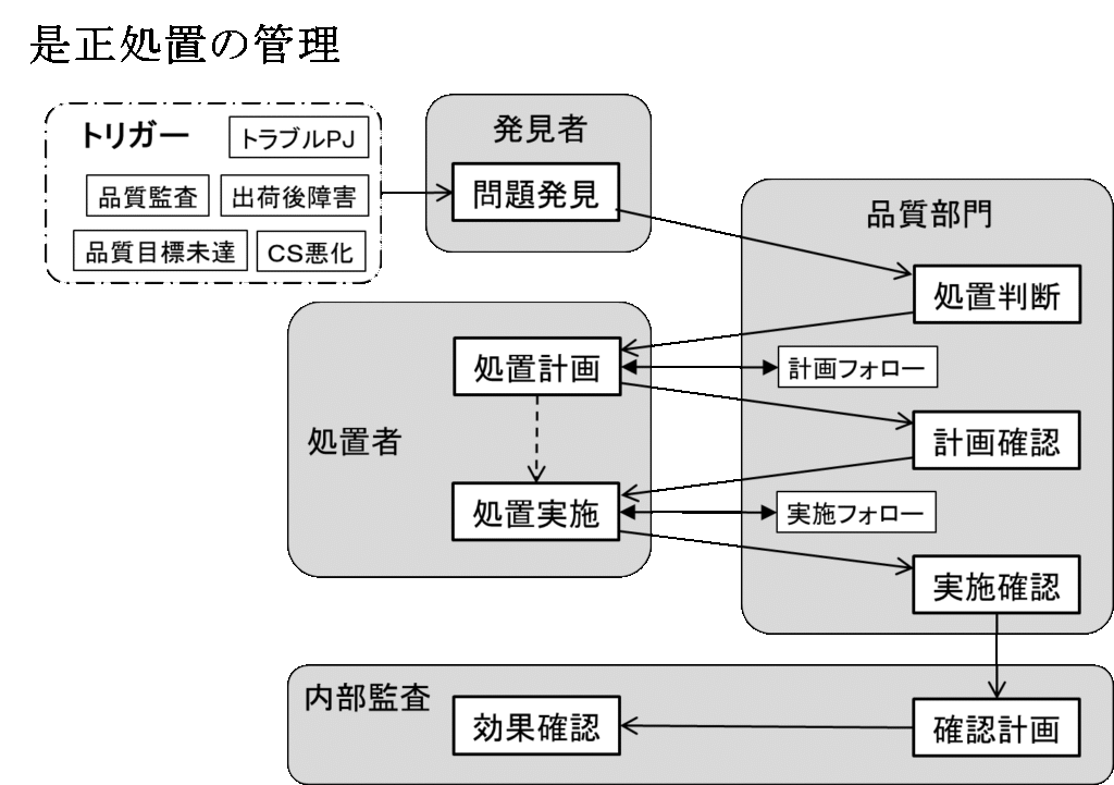 是正処置管理の流れを示したものが下の図です。※前回の記事でも用いた図です